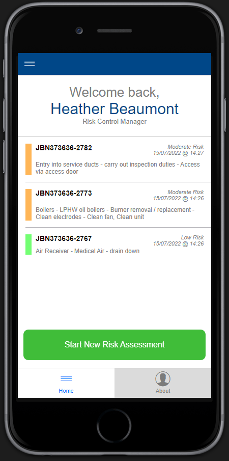 With the Risk Control Manager App, staff can use a resource of over 500 Facilities task risk assessments or create dynamic risk assessments on the go using a phone or tablet, putting the information they need directly into the palm of their hand.
