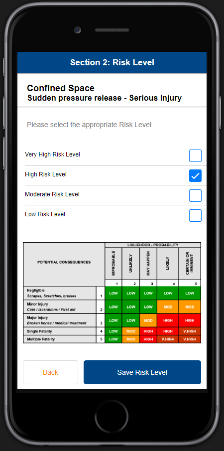 All risk assessments completed are time and date stamped and can be accessed via any web-enabled device. As soon as an assessment is complete, it is immediately available via web access records as a PDF.
